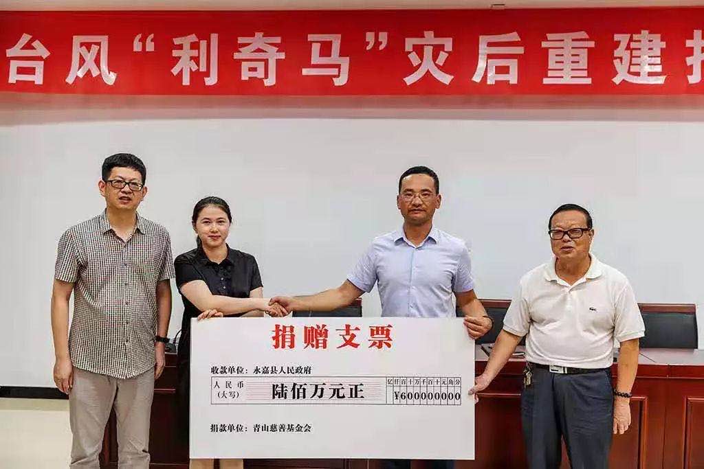 2019年8月10青山实业向永嘉灾区捐钱600万